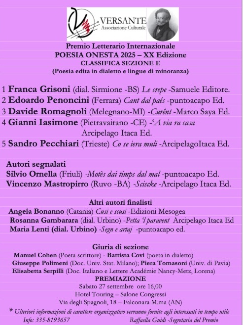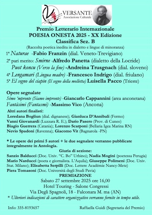 La Sezione B è dedicata alla Raccolta poetica inedita in dialetto e lingue di minoranza.