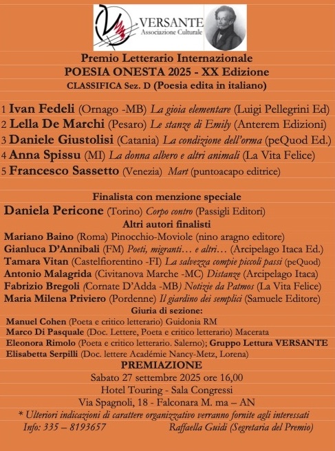 POESIA ONESTA 2025 XX Edizione – 7-27 Settembre 2025